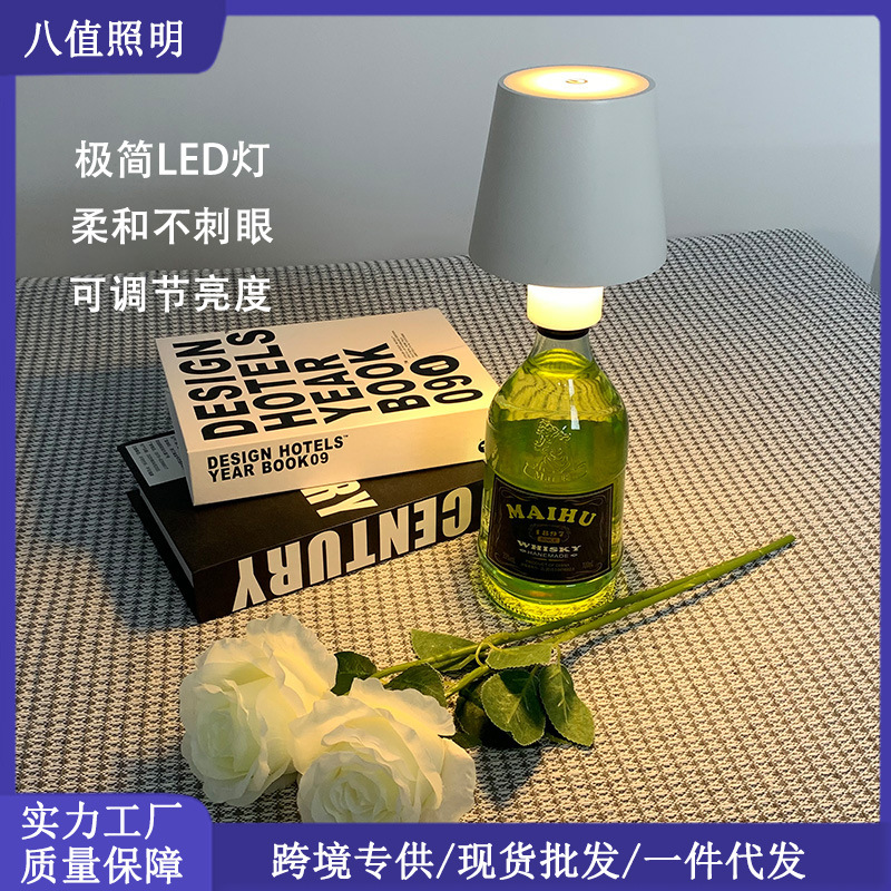 国境を越えた環境に優しいクリエイティブなワインボトルランプ、個性的なLEDデスクランプ、充電式タッチ調光機能付き