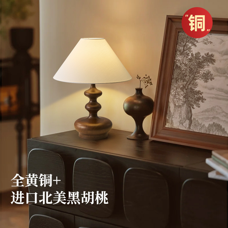 全銅アメリカン中世フレンチレトロベッドサイドテーブルランプ北米ブラックウォールナット高級無垢材リビングルームスタディランプ