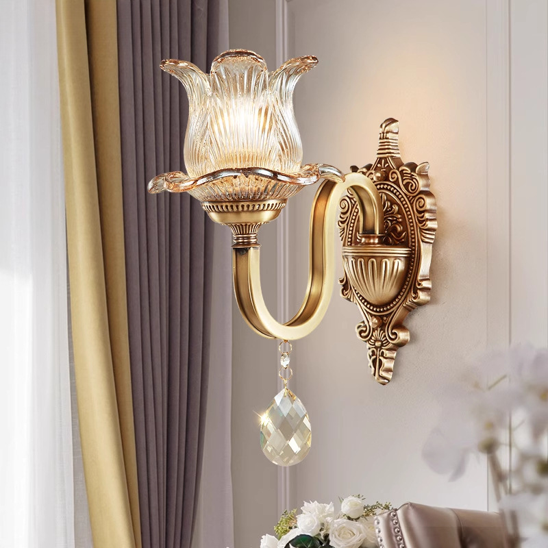 ヨーロッパスタイルの全銅壁ランプリビングルームのテレビの背景壁アメリカンライト高級クリスタル通路寝室のベッドサイドランプ 011