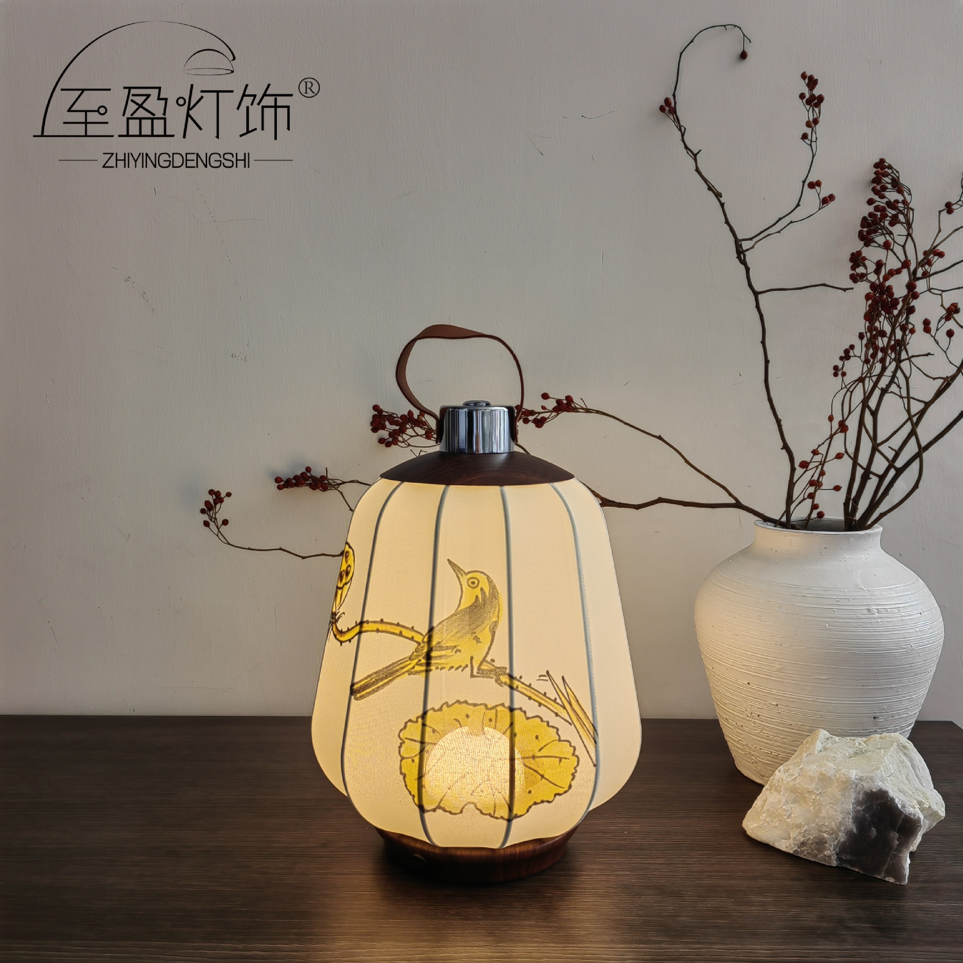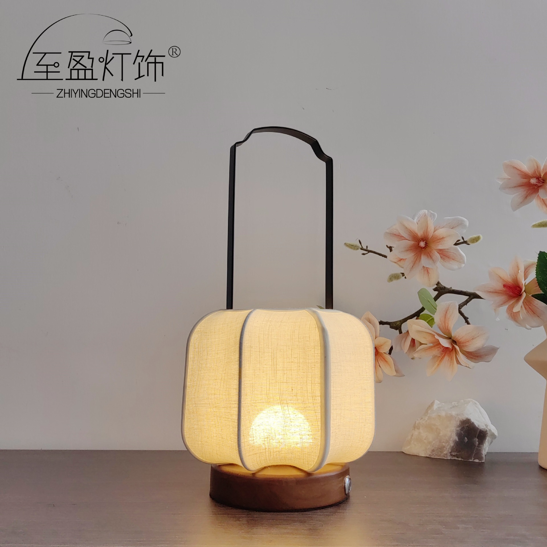 レトロ禅充電式ポータブルランプ中国のシンプルな中国風のB&B寝室のベッドサイドテーブルランプ宋代の美的ランプ