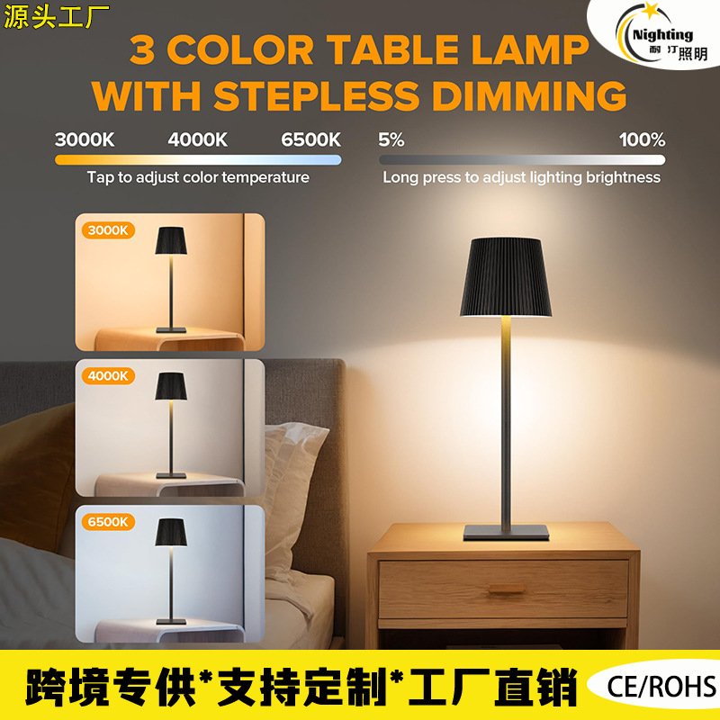 クロスボーダーインパターン調光可能なナイトライトレストラン寝室の装飾シンプルな雰囲気のライトクリエイティブ充電式テーブルランプ
