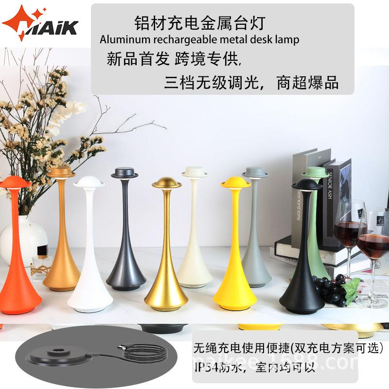 クロスボーダーメタルシンプルなナイトライトタッチポータブル寝室のベッドサイドランプクリエイティブLED雰囲気ライト充電式テーブルランプ