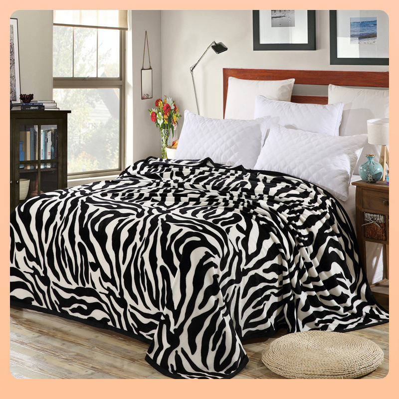✅ 黒と白のゼブラ柄フランネルブランケット、昼寝用ゴールデンミンクフリースブランケット、厚手ソファカバーブランケット、暖かいコーラルフリース