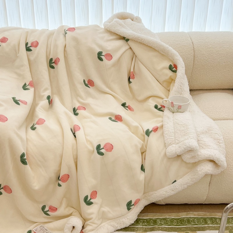 chic风韩系奶油小碎花加厚牛奶绒毛毯羊羔绒披肩毯沙发休闲盖毯子