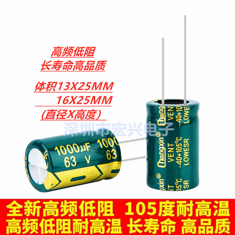 63V1000UF高周波低抵抗長寿命耐高温電解コンデンサ体積13x25mm 16x25mm