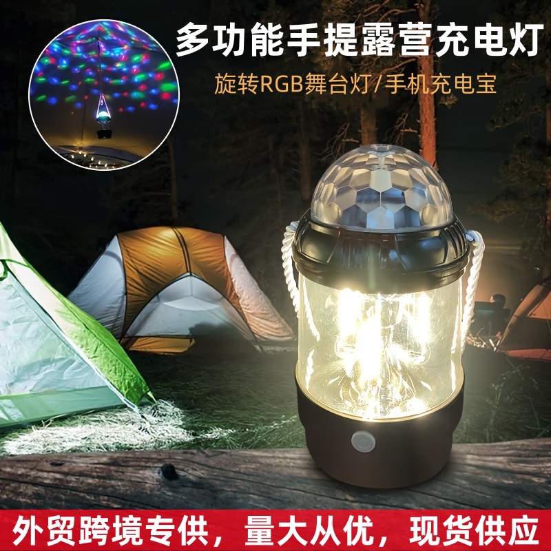 外国貿易クロスボーダー専用多機能屋外ポータブル充電キャンプライトRGB回転ステージライト携帯電話充電
