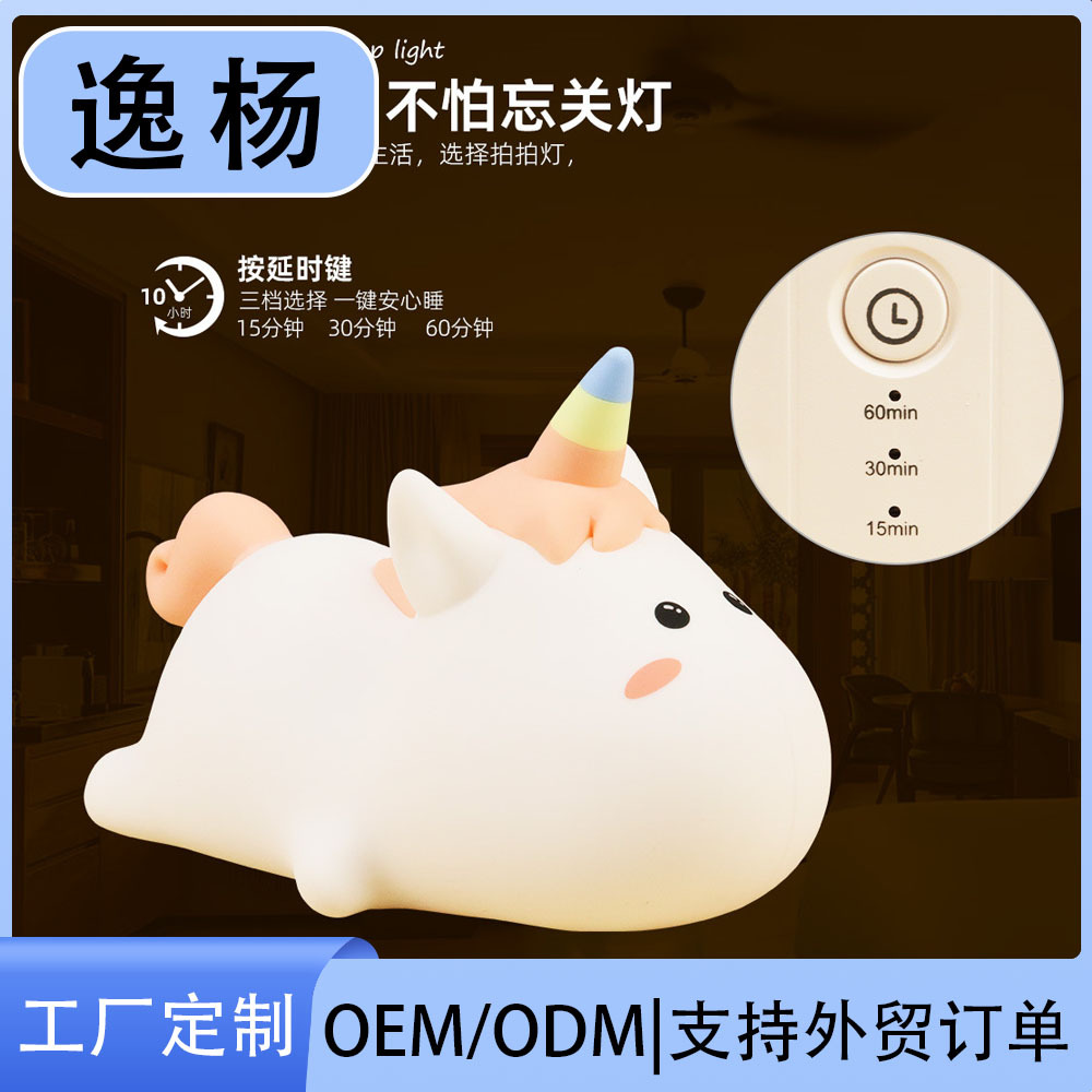 クロスボーダーのユニコーンのシリカゲルの小さい夜の明かりのベッドの頭をたたいて明かりをたたいて充電することができます。