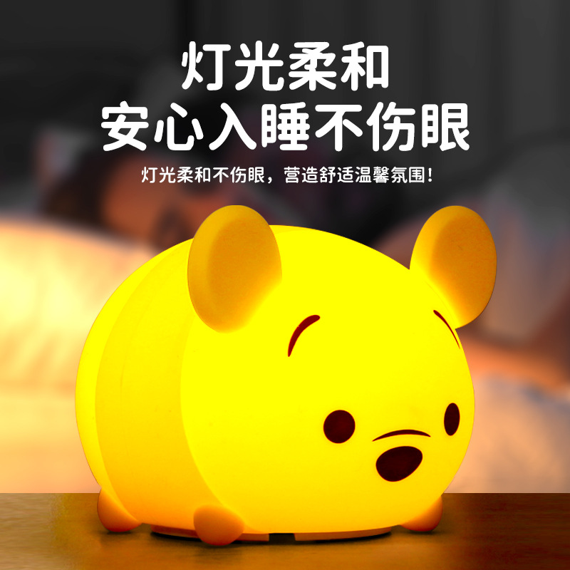 いちご熊の充電が便利なシリカゲル小夜灯維尼熊寝室の小さな電気スタンド三眼仔が明かりをたたいてベッドのヘッドライトをたたいた