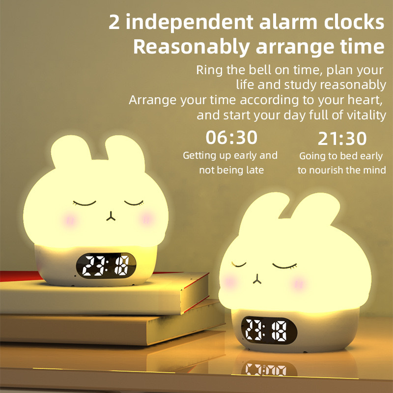 充電ウサギのナイトライトは目覚まし時計を持っています。