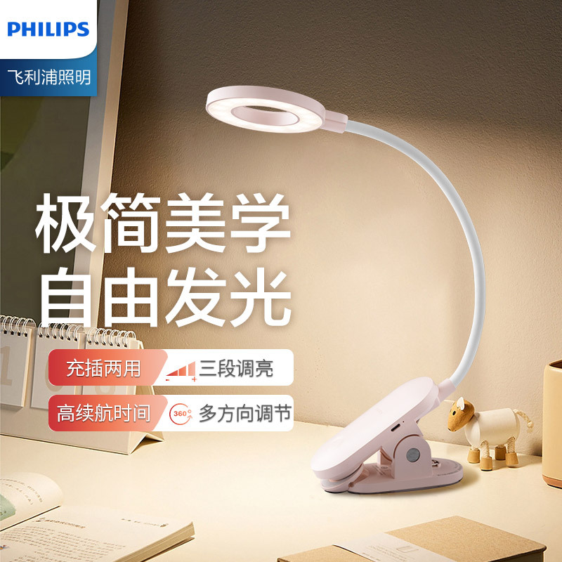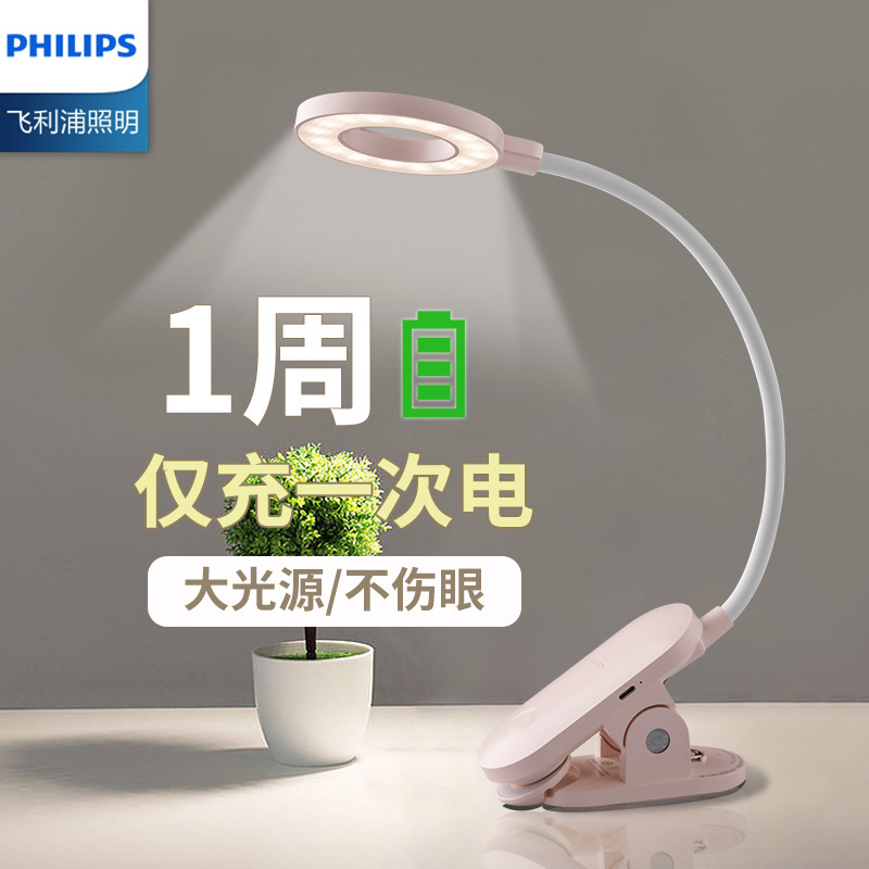 フィリップスled電気スタンド充電式アイデスク学生寮クール荷ベッド寝室読書クリップ式ランプ