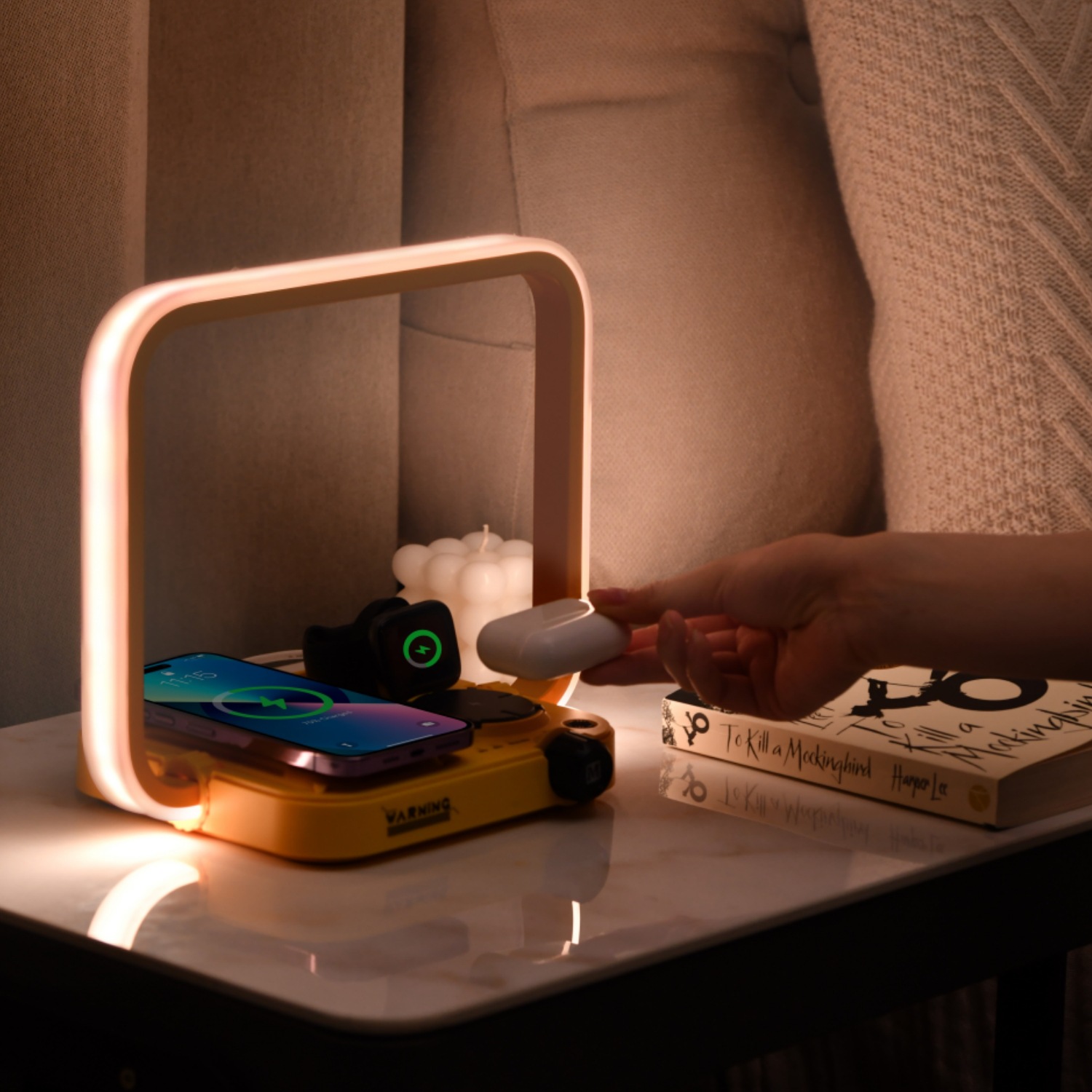 新商品のカラフルな雰囲気のランプのベッドのヘッドライトの電気は意外にもゲームの明かりの3つの携帯電話のイヤホンの腕時計の無線充電の夜の明かりです。