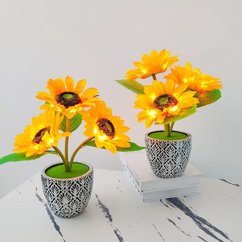 創意プレゼントシミュレーション花盆栽ランプledひまわり小夜灯置物雰囲気感ベッドヘッドランプ装飾電気スタンド