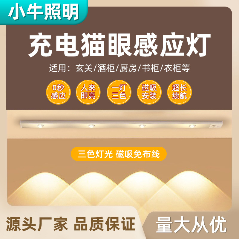 Led知能人体感応灯長条無線磁気吸式ベッド足タンス棚灯充電寝室小夜灯