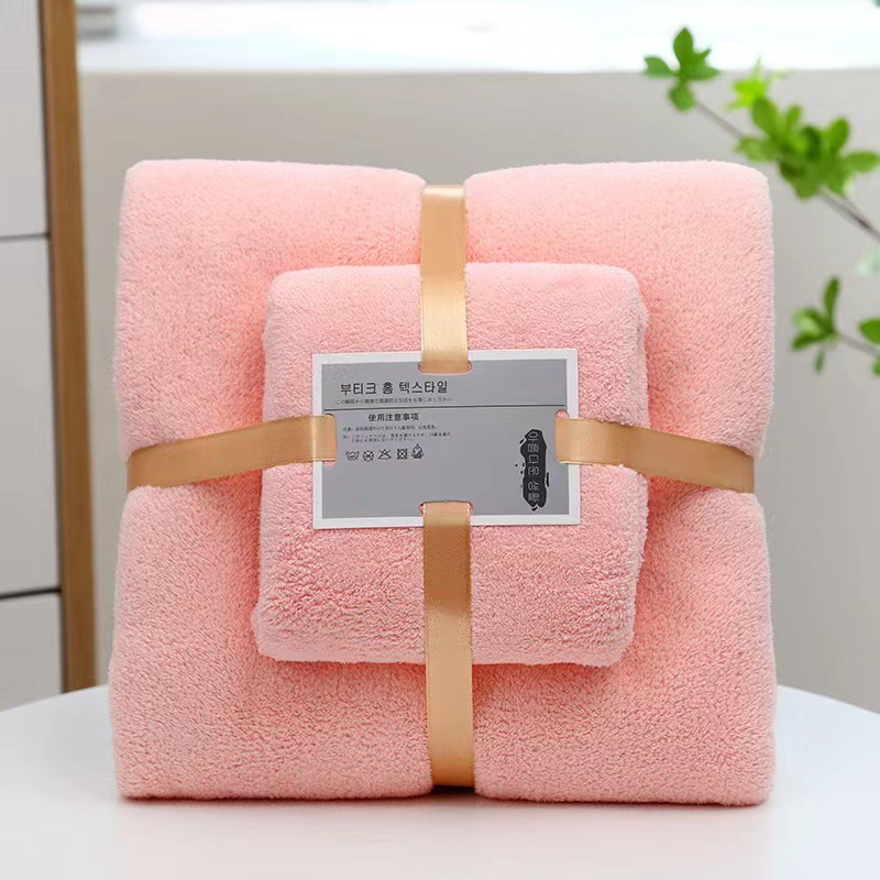 コーラルベルベットタオル バスタオルセット 柔らかく吸水性のあるギフト2点セット カップル向け 吸水速乾 家庭用