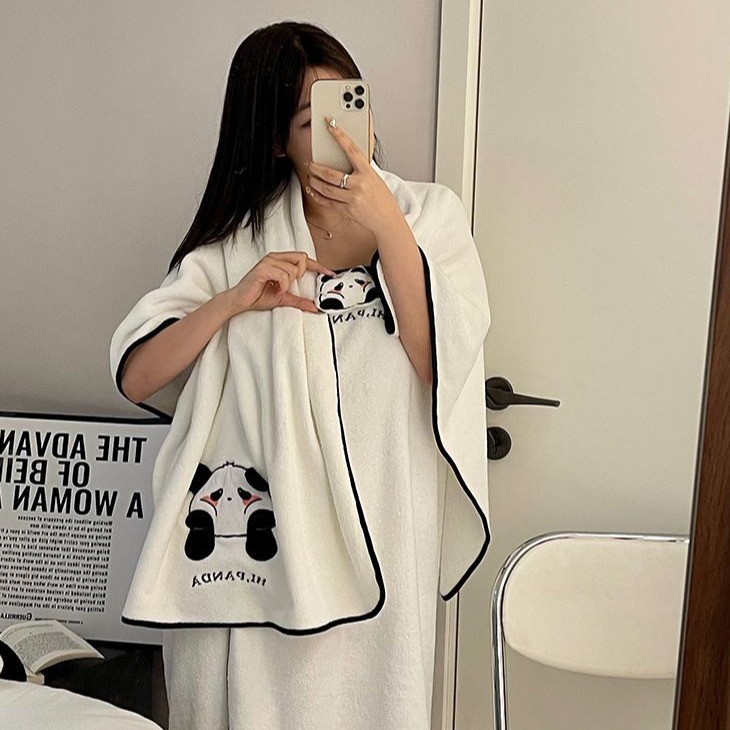 メーカー卸売りかわいい柔らかいサンゴのベルベットの入浴セット漫画パンダ吸水タオルバスタオルのシャワーキャップのカバー