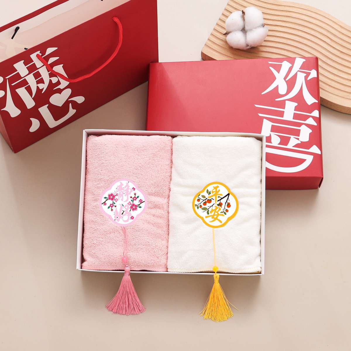 2025 新刺繍タッセルタオルダブルパックブライズメイド記念品結婚式のお返しギフトハイエンド刺繍中国風タオル