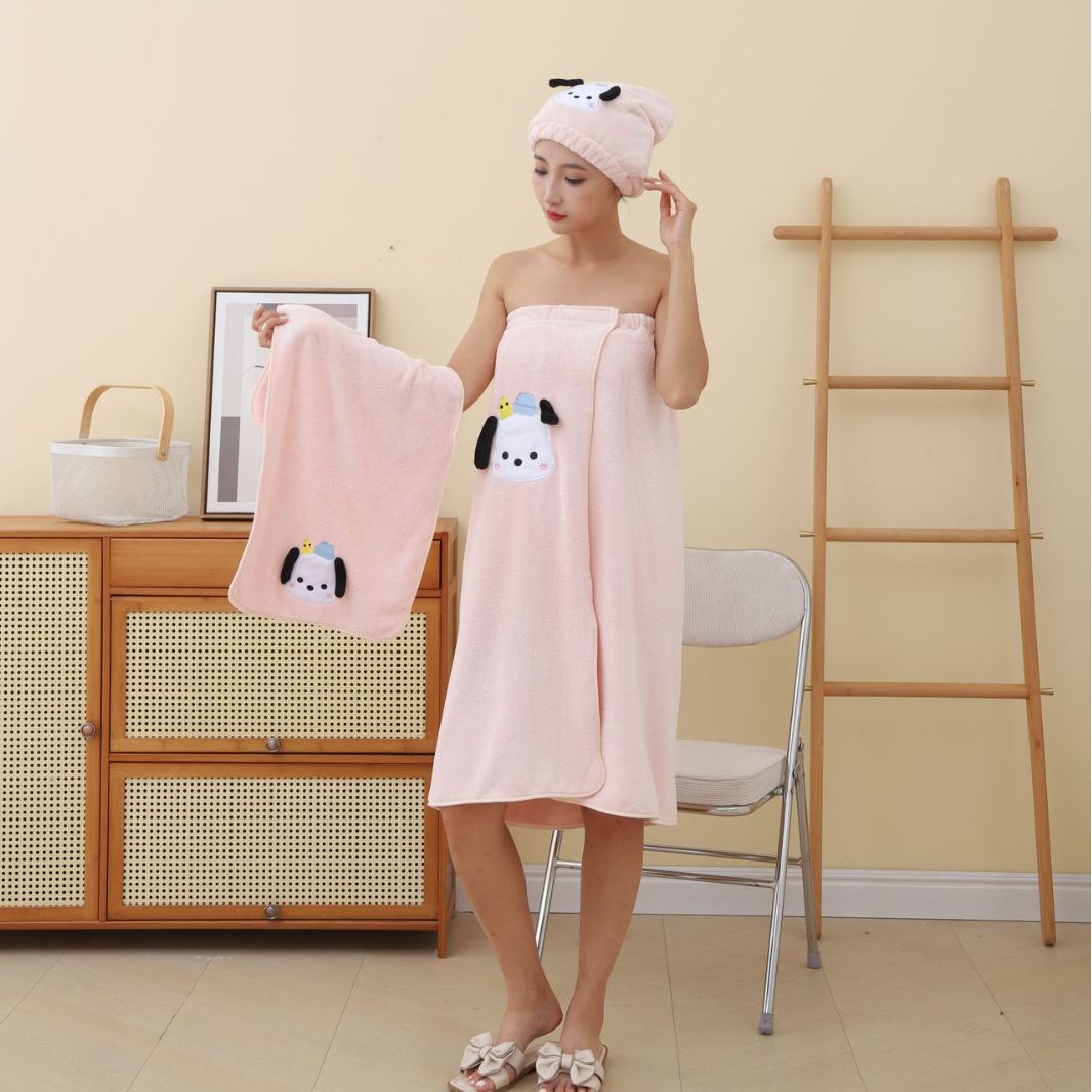 サンゴのベルベットのパチャ犬のバスタオルのスカートの乾いた髪の帽子のセットのかわいい漫画の吸水のバスタオルのクロスボーダーの卸売り