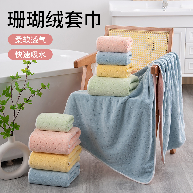 越境ECタオル・バスタオルセット、経編コーラルベルベット家庭用タオル、コーラルベルベット輸出用タオル・バスタオル卸売
