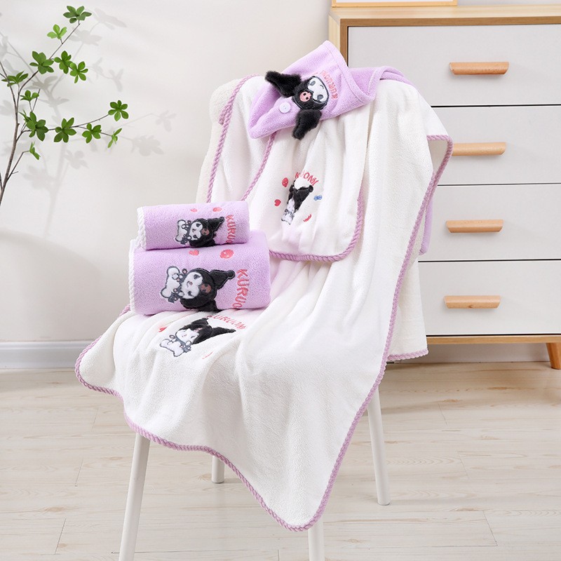 サンリオ漫画立体クロミコーラルベルベットタオルセットバスタオル柔らかく吸収性の子供用大人用バスタオル