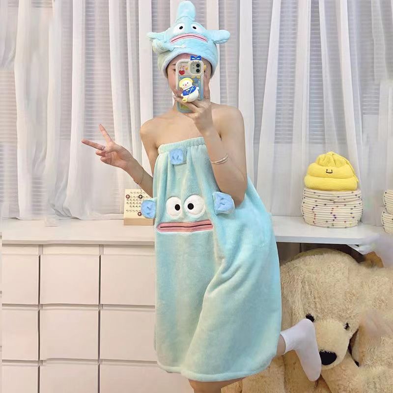 タオルバスタオルドライキャップ三点セット新品可爱い漫画ウサッチコーラル刺繍ソフト吸水洗颜