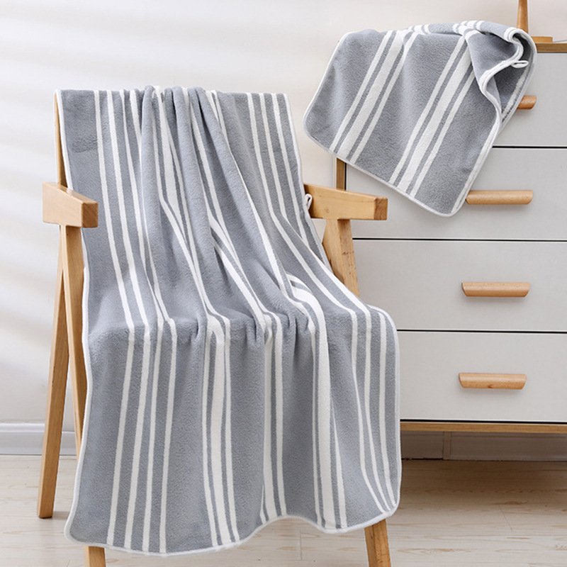 クロスボーダー新作コーラルベルベットキャンディストリップエッジクラウドベルベットソフト増厚タオルバスタオル吸水性強力セット、ドロップシッピング対応