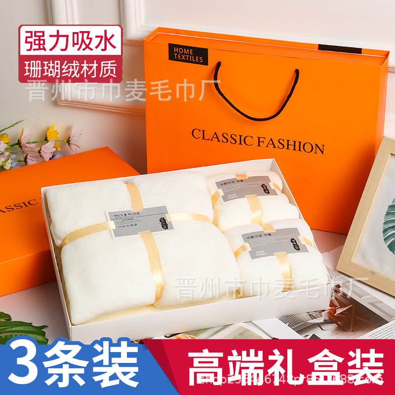 コーラルベルベットタオル バスタオル 3枚セット ギフトボックス 吸水性大判バスタオル ビジネスイベントギフト 従業員福利厚生タオル