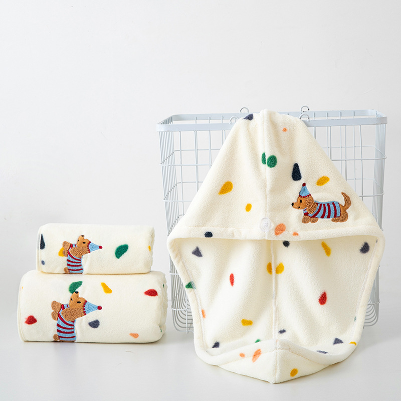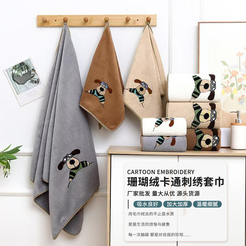 アニメかわいい刺繍星犬バスタオルセット超柔らかいサンゴタオル吸水速乾厚手タオル