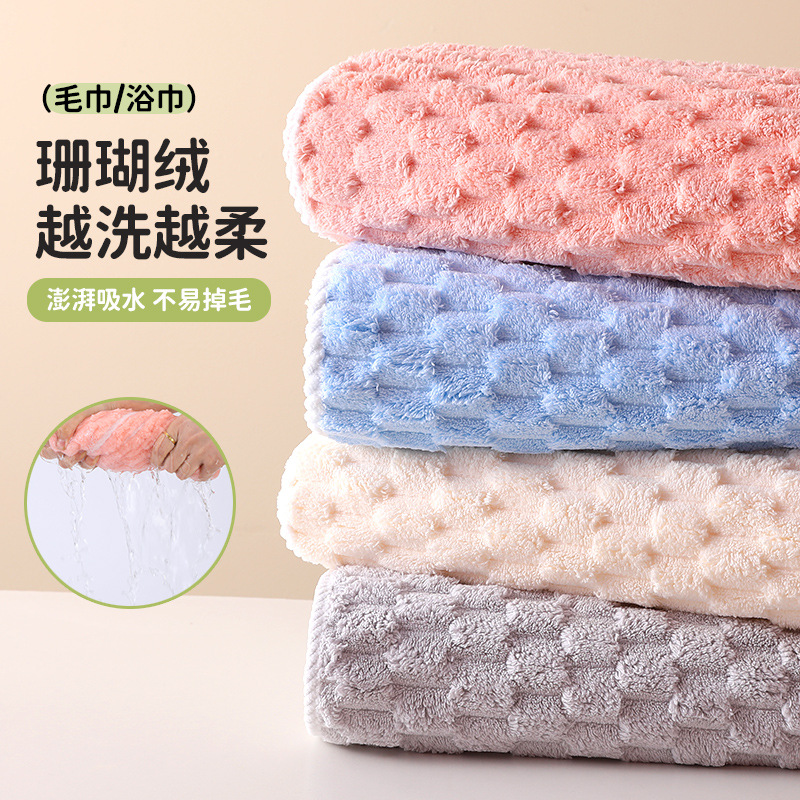 タオル工場卸売り高密サンゴベルベットプレゼントタオルバスタオル角タオル吸水速乾タオルカスタムロゴ