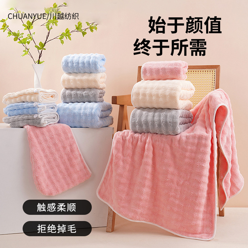 3色チェック柄コーラルベルベット大型バスタオル吊り下げ家庭用厚手フェイスタオル子供用小さな正方形タオル柔らかい吸収性タオルセット