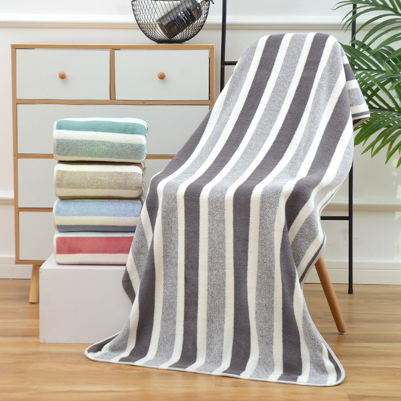 メーカーの新型サンゴのタオルのバスタオルの大きい幅の条の家庭用成人の柔らかい快適な吸水サンゴのタオル