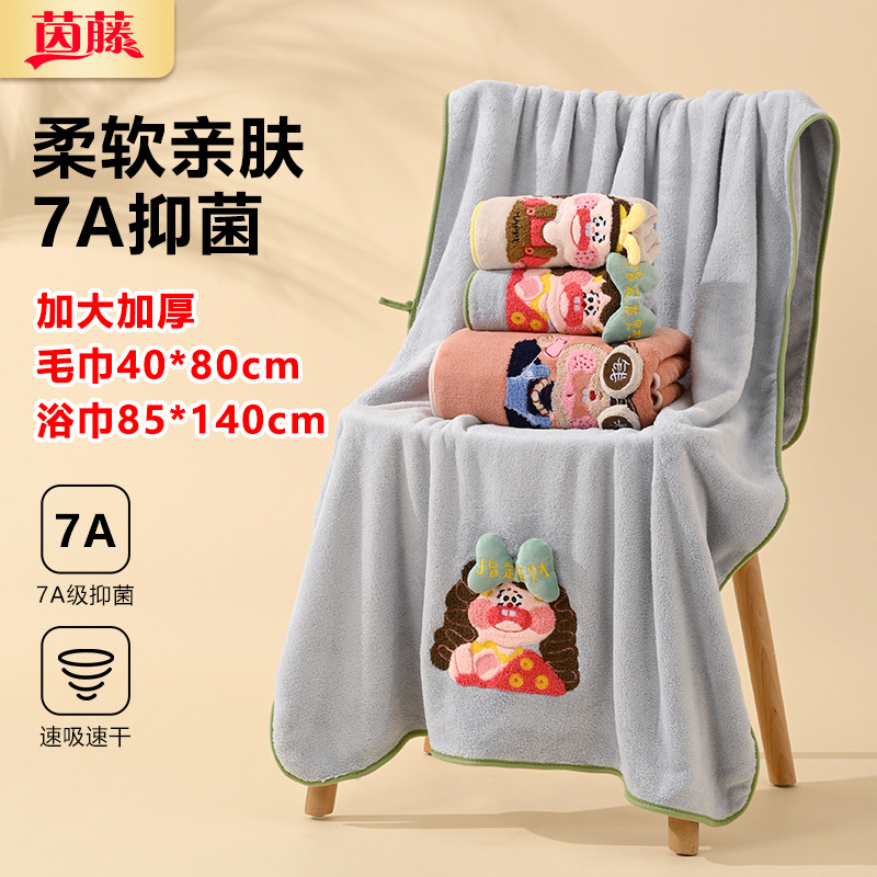 漫画入浴タオルバスタオルサンゴのベルベットの材質がかわいい流行刺繍カバータオル快適で繊細な家庭用吸水タオル