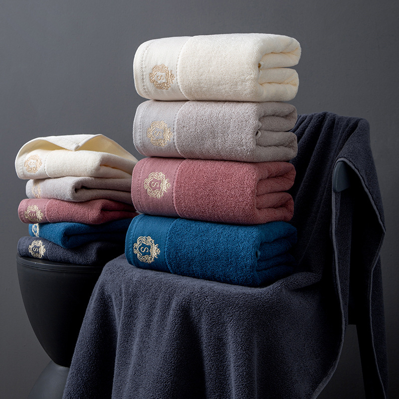 越境卸売代行 長繊維綿タオル バスタオル3点セット 吸水性 大人用フェイスタオル ビーチタオル 刺繍入り広告タオル