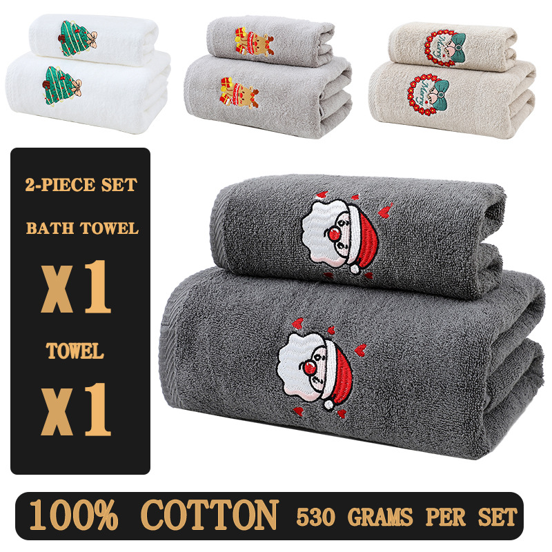 国境を越えてクリスマスプレゼント用タオル2セット1バスタオル1タオル欧米のソース代代代綿セットタオル