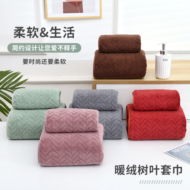 メーカー卸売り経編サンゴの木の葉タオル日用柔らかい吸水タオルバスタオルカップルプレゼントセット