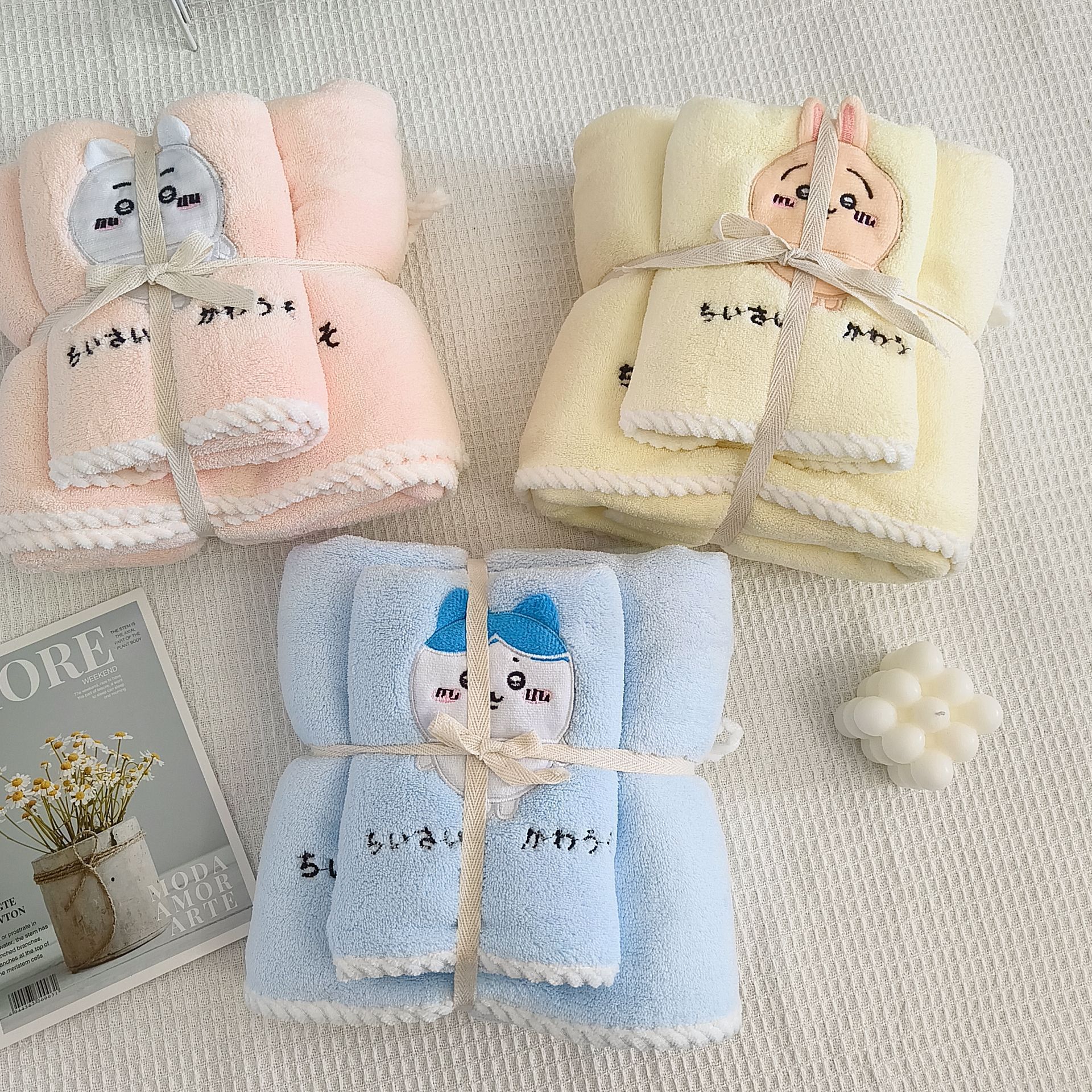 Ins風アニメ刺繍乳幼児用柔らかい吸水家庭用タオル風呂大バスタオルサンゴ絨毛2点セット