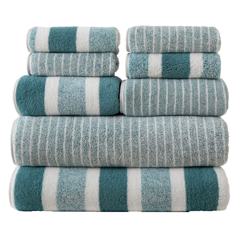 クロスボーダー 3 色ストリップ 8 点セット コーラルベルベットセット スクエアタオル バスタオル 大きくて厚い 大人用バスタオル