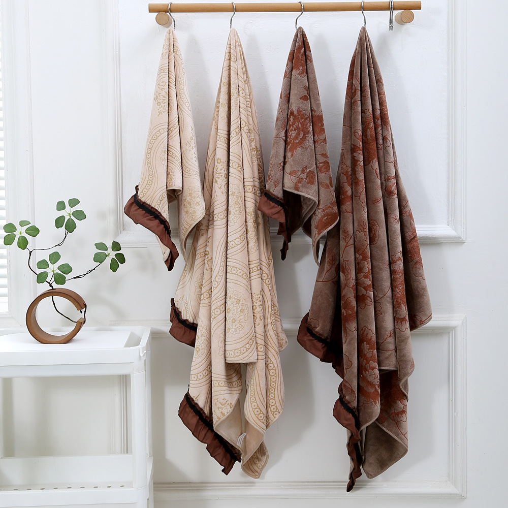 クロスボーダータオル、バスタオル、家庭用浴室、入浴、ビーチタオル、縁取り、経編コーラルベルベット、速乾性、吸水性抜群、柔らかい