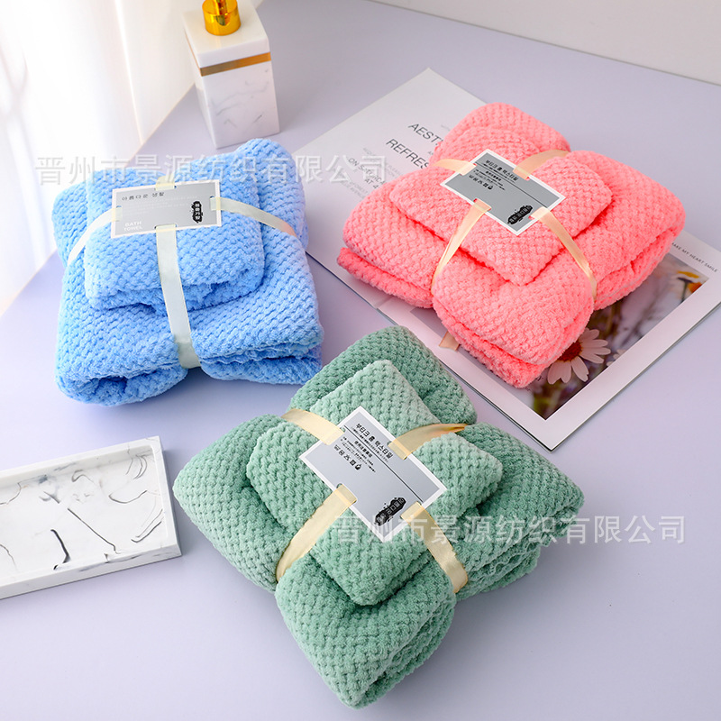 吸水サンゴベルベットタオルバスタオル2点セット家庭用洗顔タオル柔らかい肌に毛が落ちないタオル風呂タオル