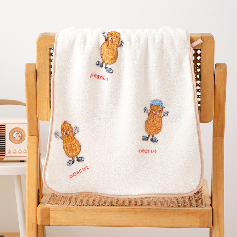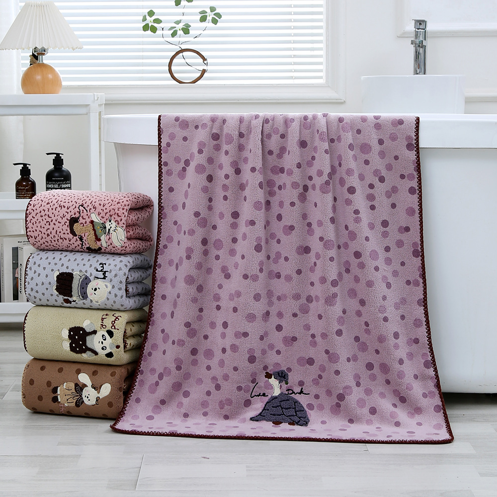 新しいクロスボーダーコーラルベルベットフックエッジプリント刺繍漫画ソフト吸水速乾ギフトタオル入浴用大型バスタオル