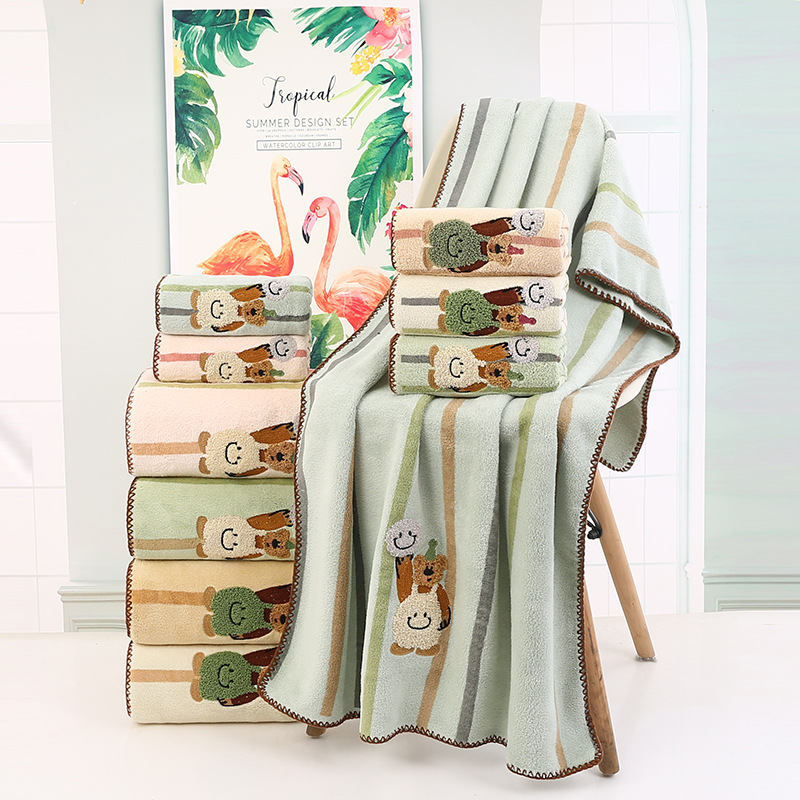 メーカー卸売り青春派デイジーサンゴベルベット刺繍タオルバスタオル2点セット超柔らかい吸水タオル