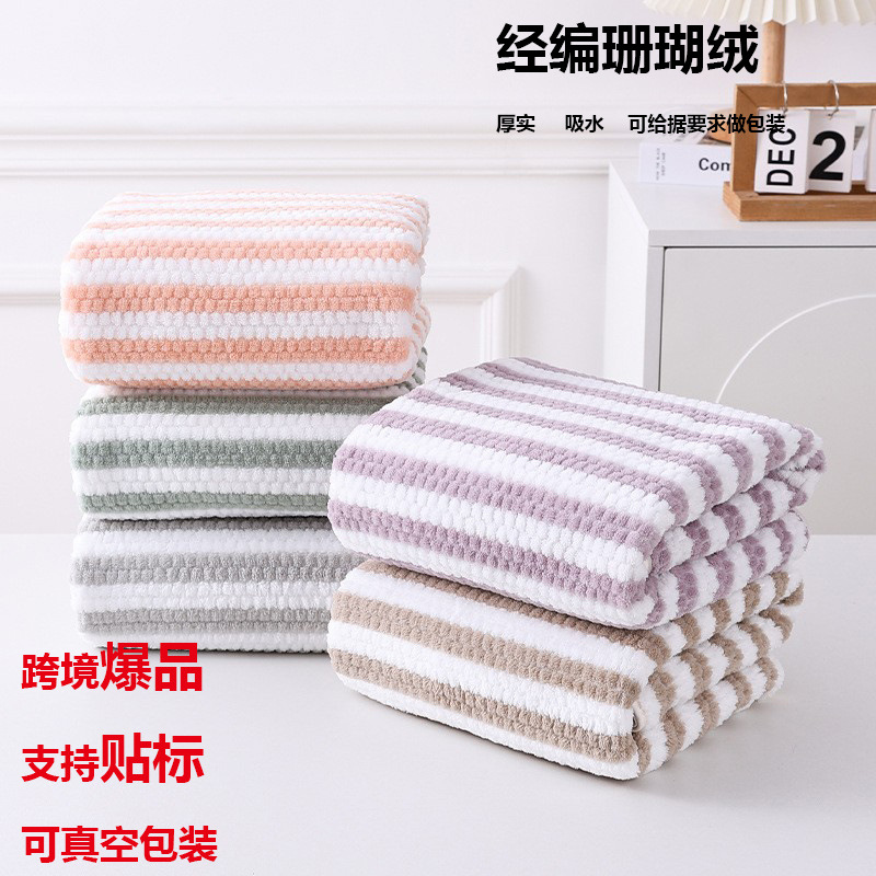 コーラルベルベットコーンストライプタオルカップルセット厚みのある両面吸収性フェイスタオル卸売バスタオルタオル