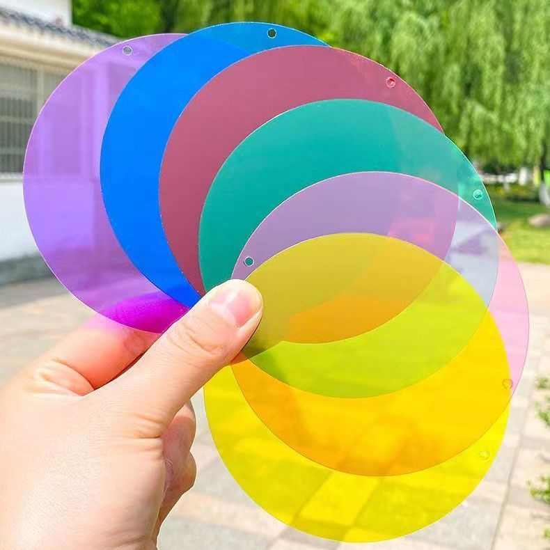 DIY手作り円形透光シートカラーガラス紙透光透明幼稚園絵画プラスチックシートのシーン配置