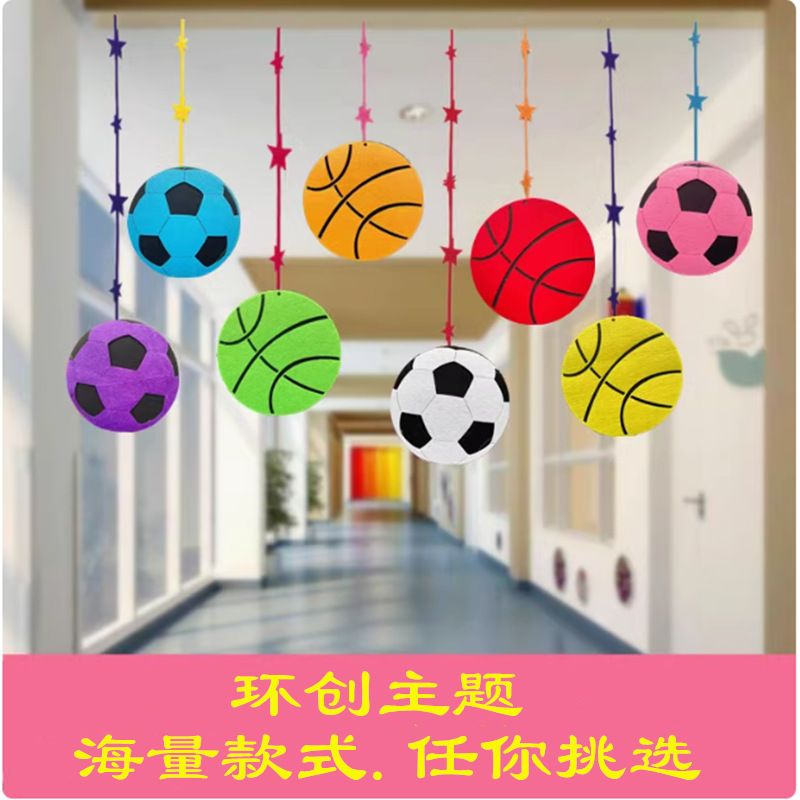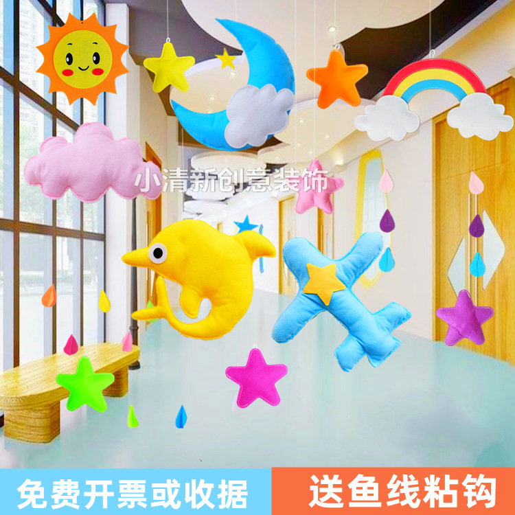 幼稚園ホール吊り飾り教室廊下店舗フェルト布飾りアイデア空中吊り飾りクラスリング創テーマ
