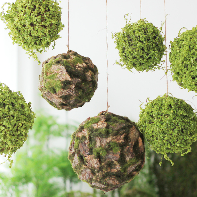 フォレストスタイルの装飾ボール、緑の植物の吊り下げボール、幼稚園の植物コーナーのアレンジメント、家の小屋の天井、空中吊り下げペンダント