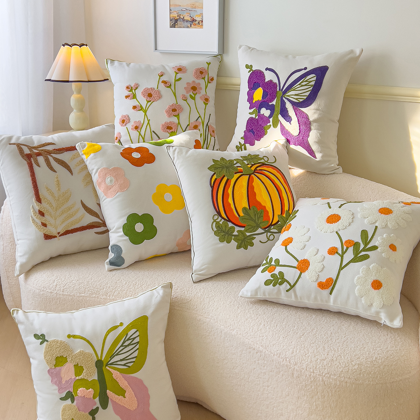 タオル刺繍枕カバー花刺繍コアなし田舎風クッションホームベッドサイドオフィスソファ腰背もたれ