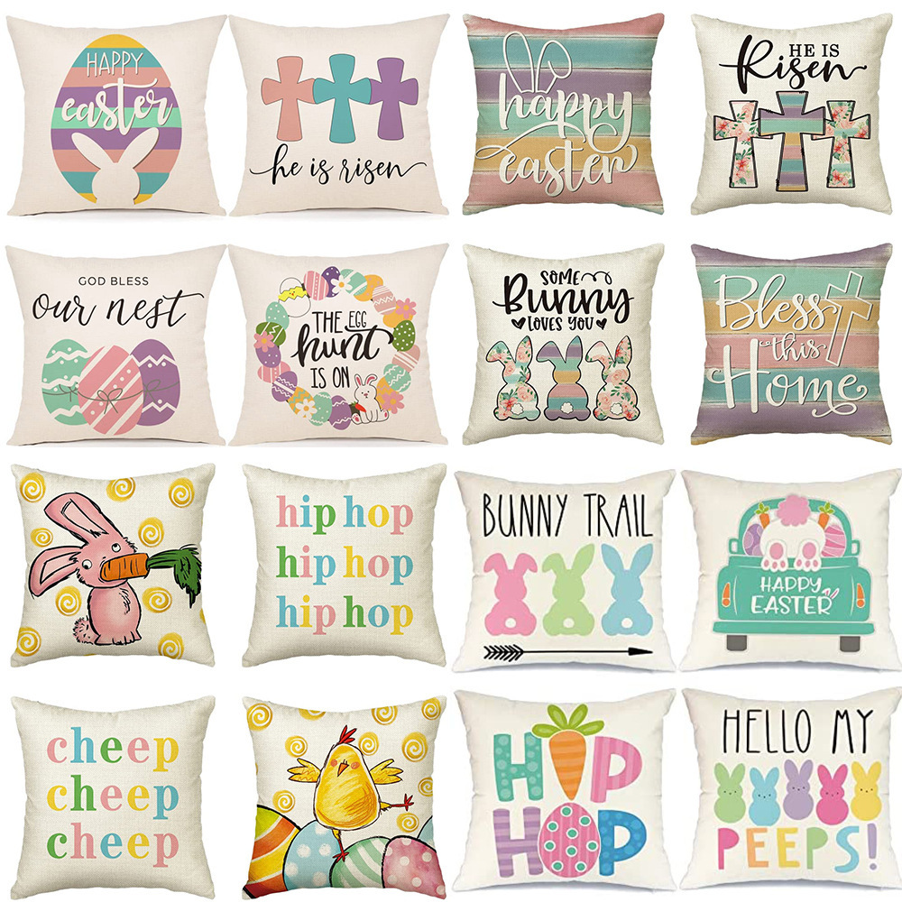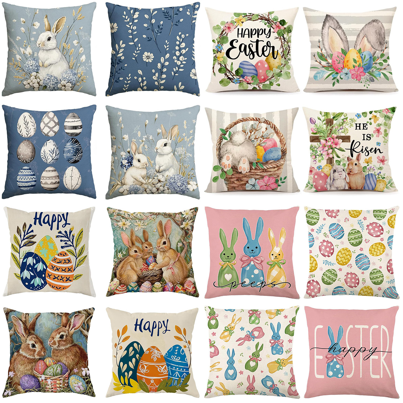 Amazon クロスボーダー イースター クッション カバー 水彩ストライプ リネン ホーム プリント クッション カバー ウサギ シリーズ クッション