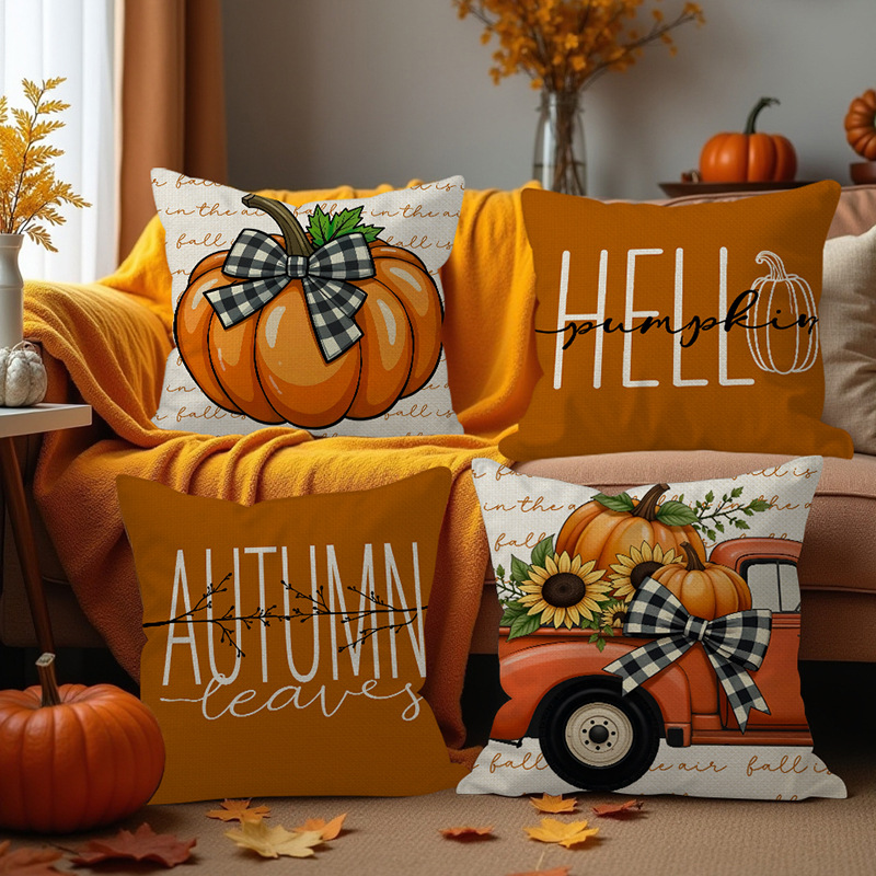Amazon ベストセラー秋感謝祭クッションカバー カエデの葉カボチャ FALL シリーズ ソファ装飾リネン枕カバー