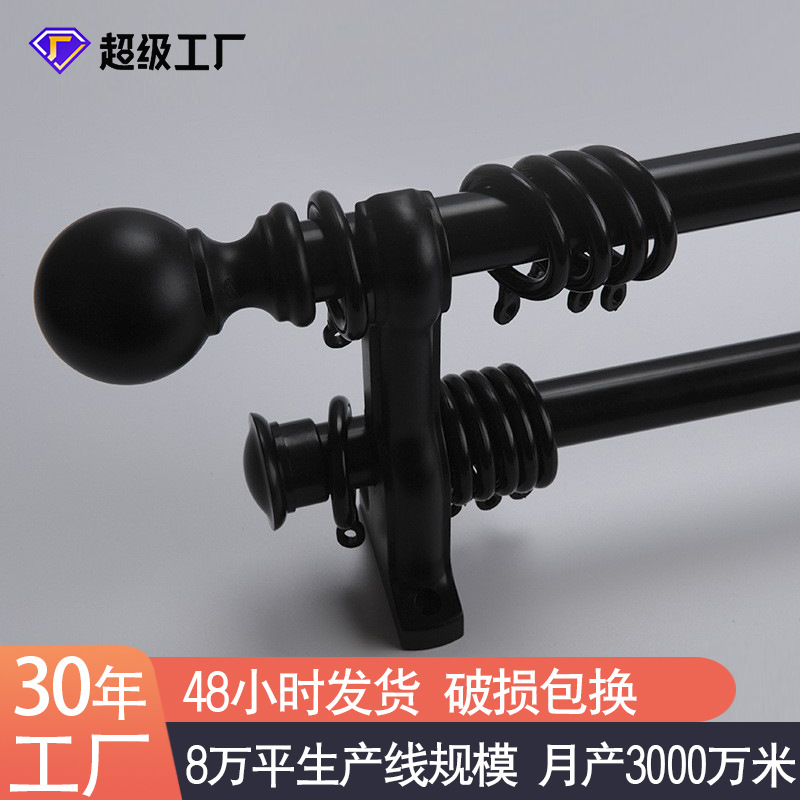 徳裕メーカーは北欧のシンプルなカーテンシュートをカスタマイズして、アルミ合金の純黒色カーテンロッドのローマンロッド卸売りを厚くした