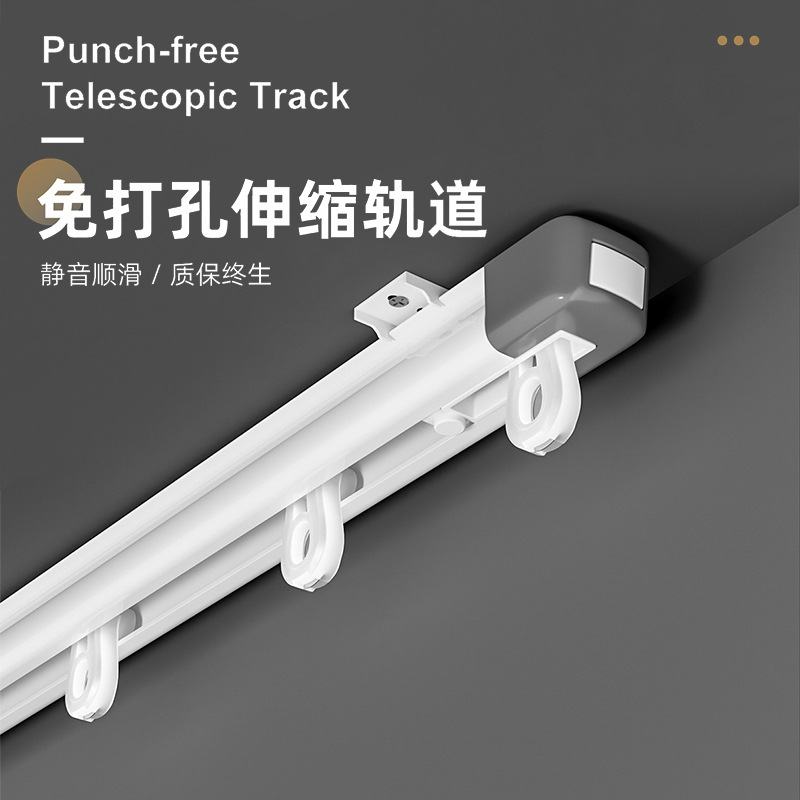 伸縮レールアルミ合金静音プーリー穴なしカーテンフック式スライドレールのトップには、サイドマウントの窓付きダブルレールが取り付けられています。