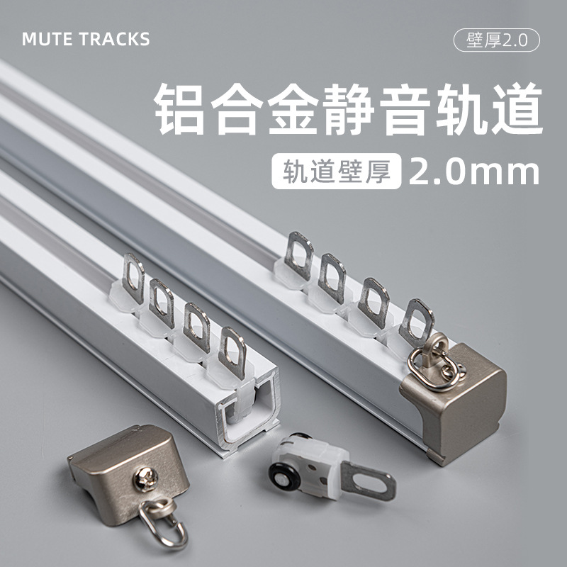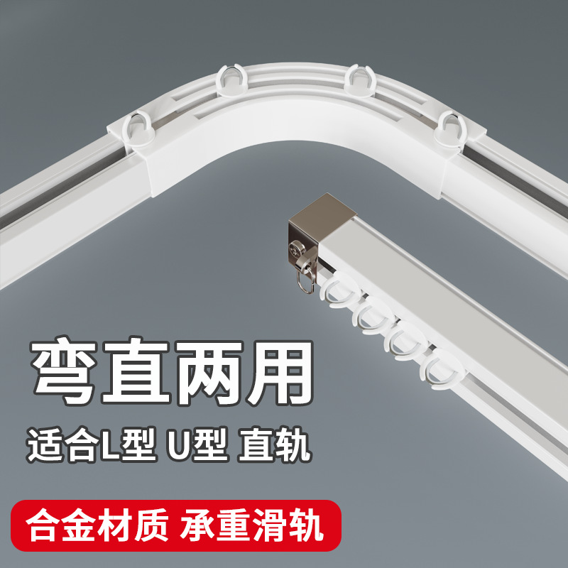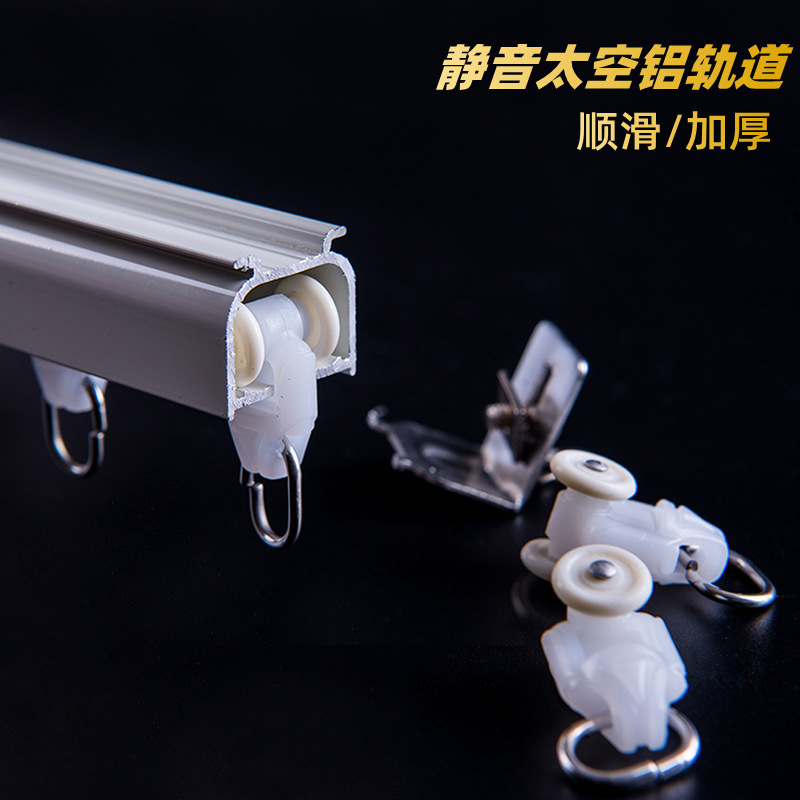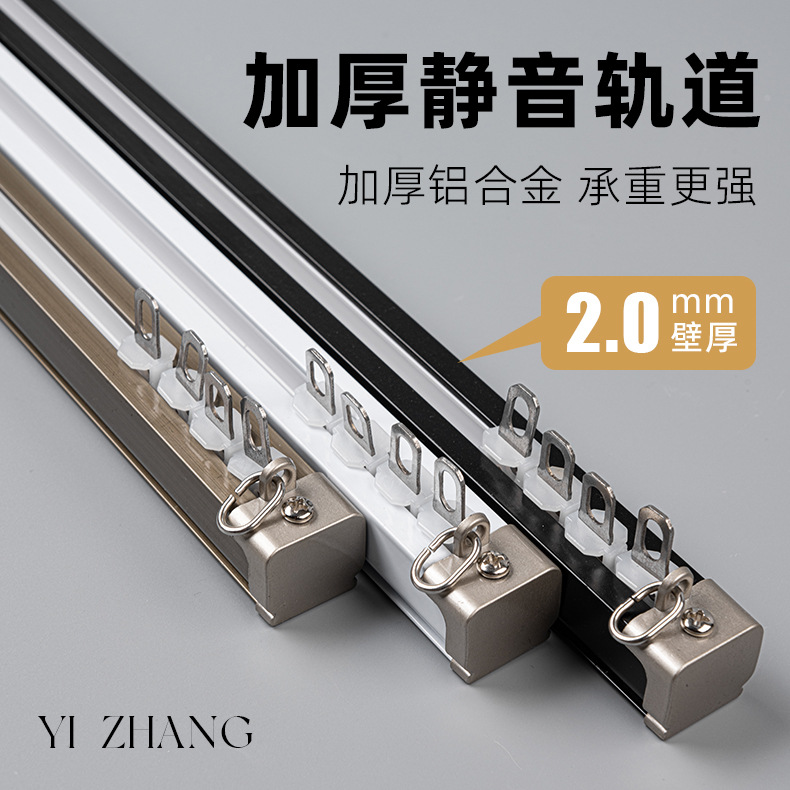 カーテンレール静音直軌道アルミニウム合金スライドレール合金輪モノレール二重レールカーテンロッドトップサイドレール